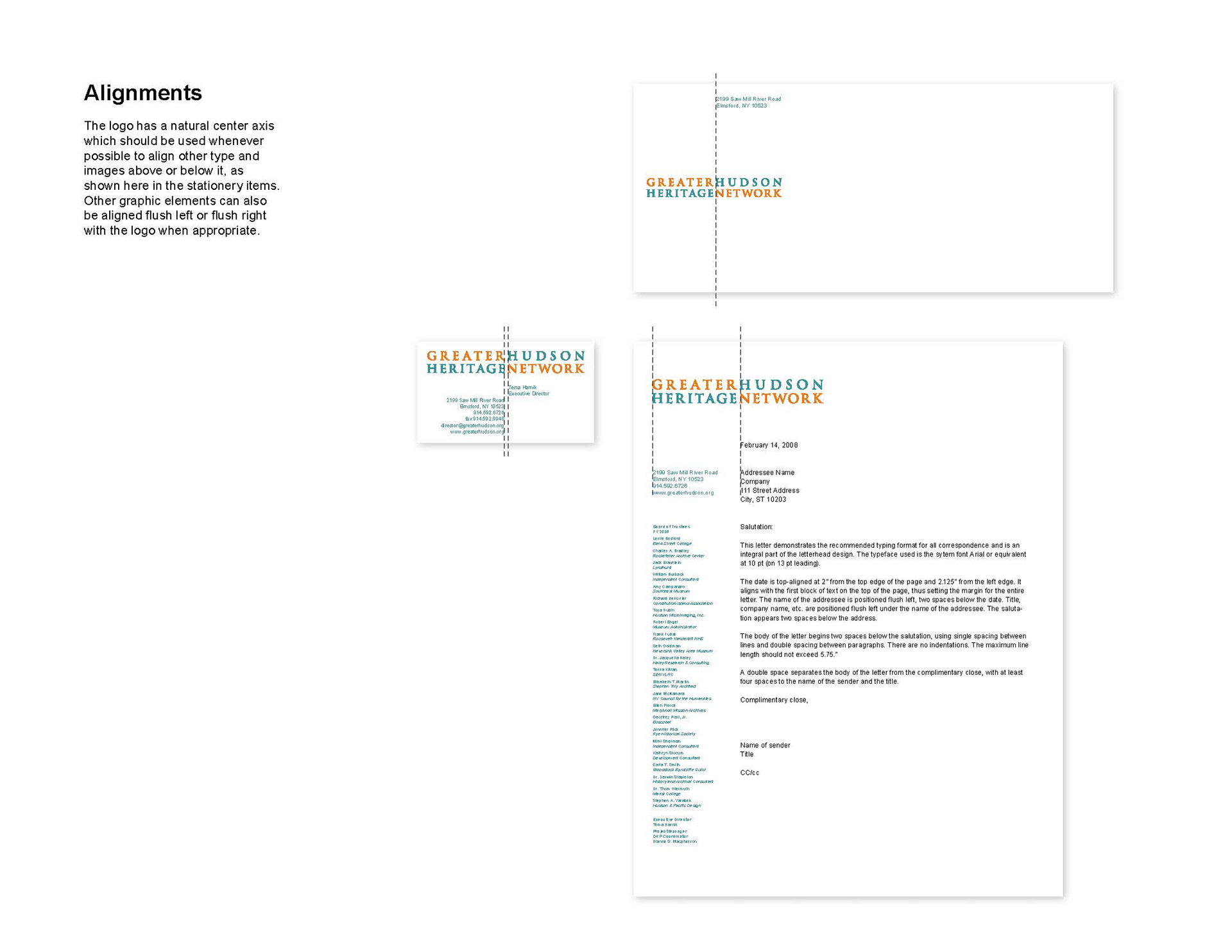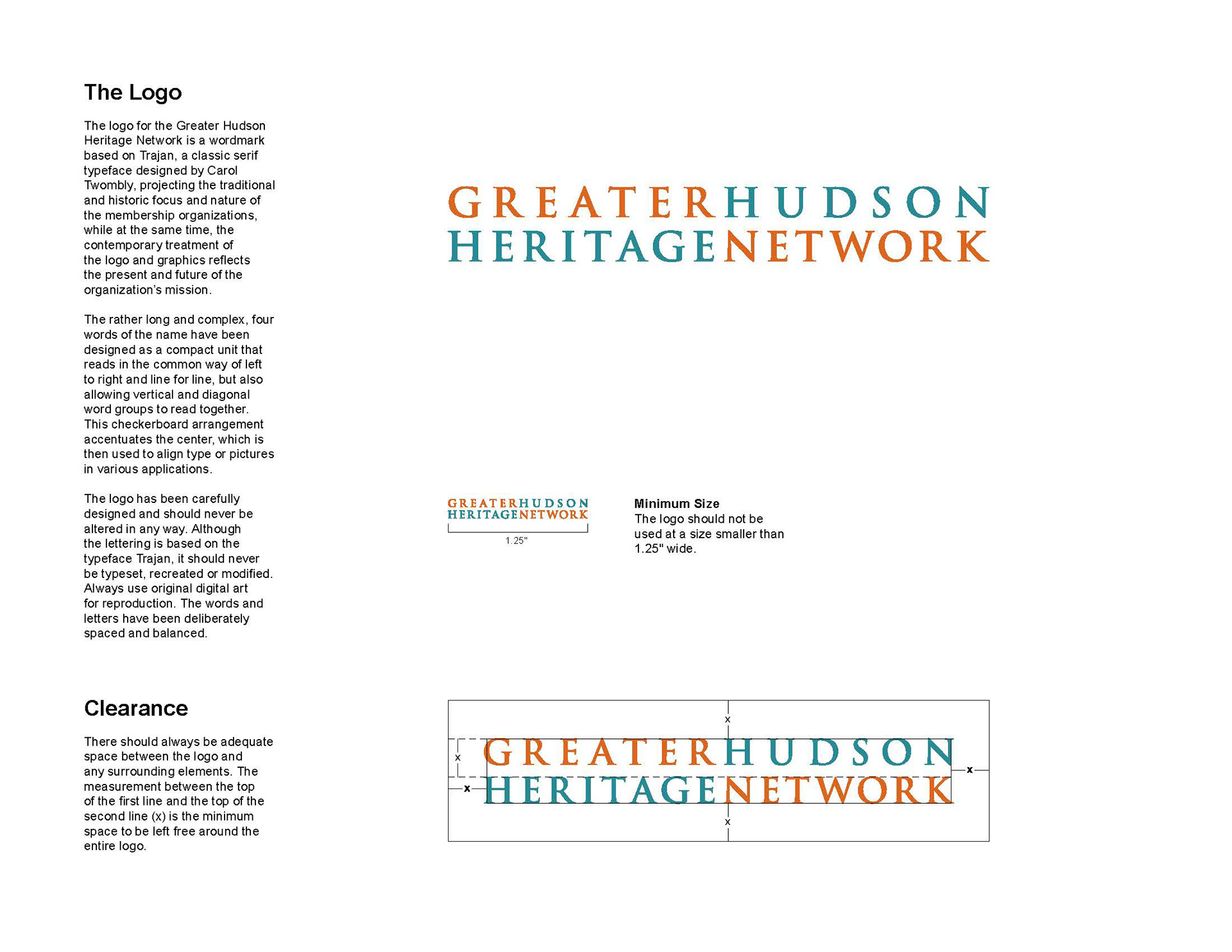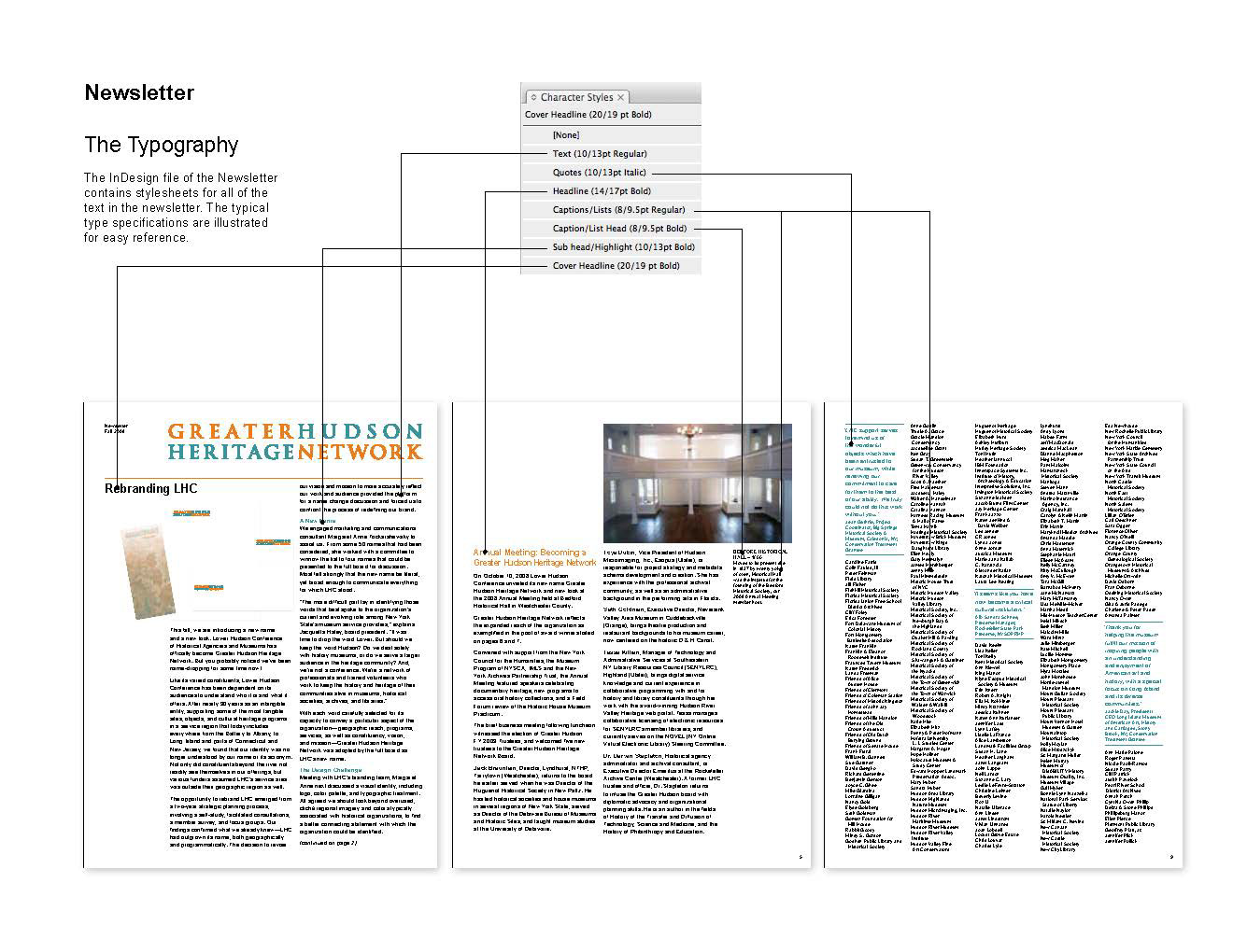 Design of brand identity for the Greater Hudson Heritage Network with pages from the guidelines