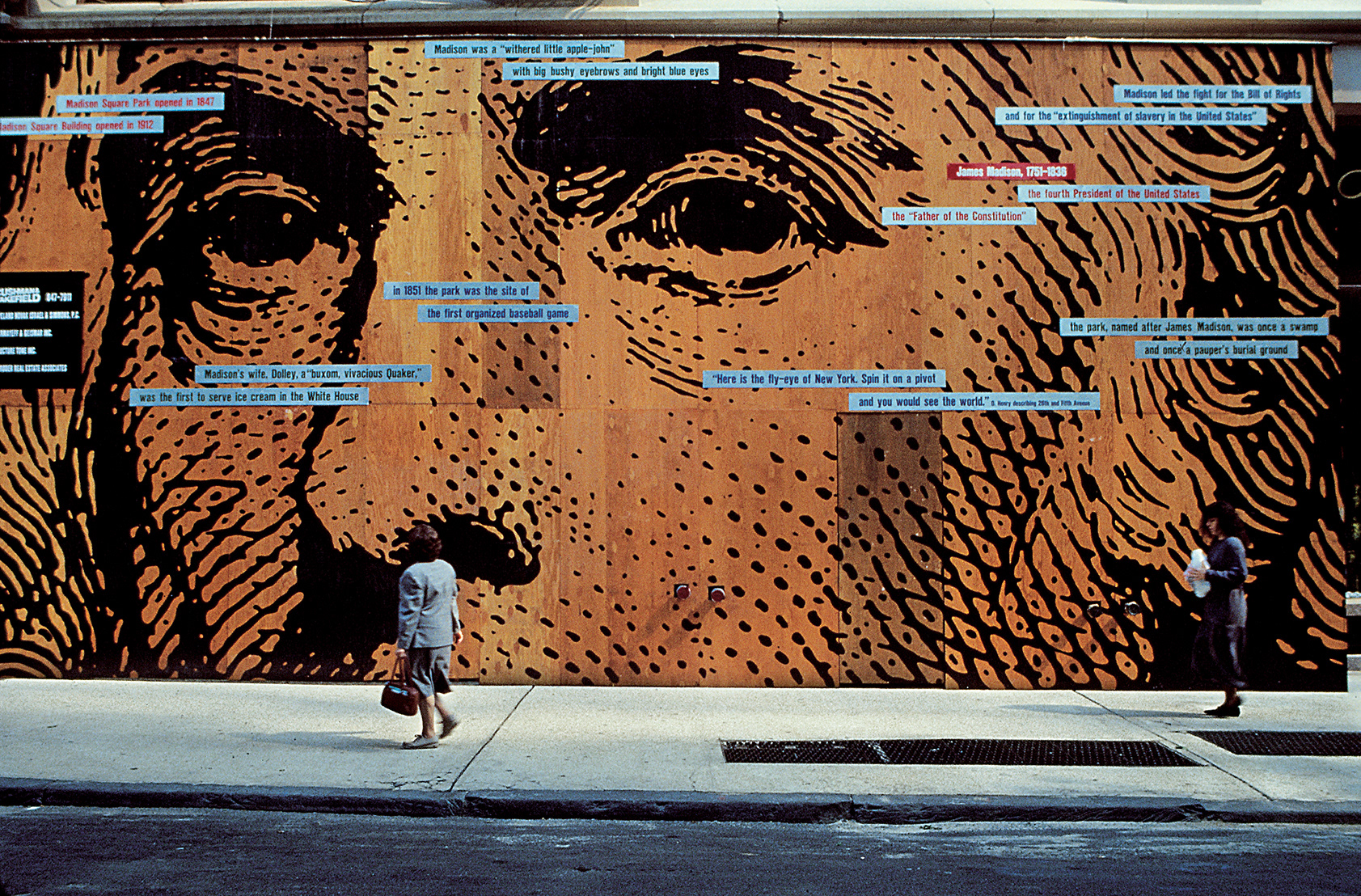 Construction barricade for the renovation of a building on the North end of Madison Square Park.