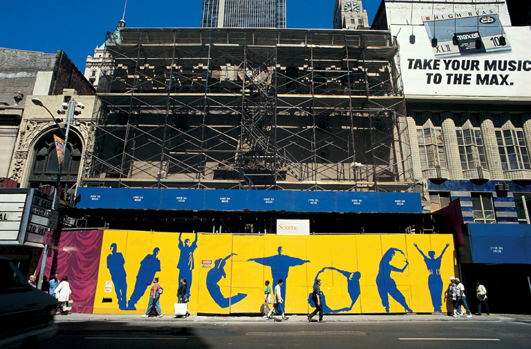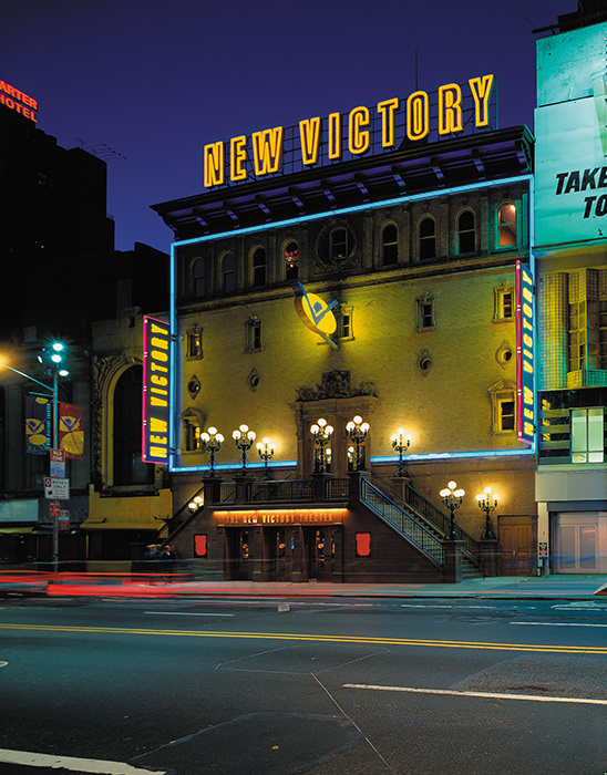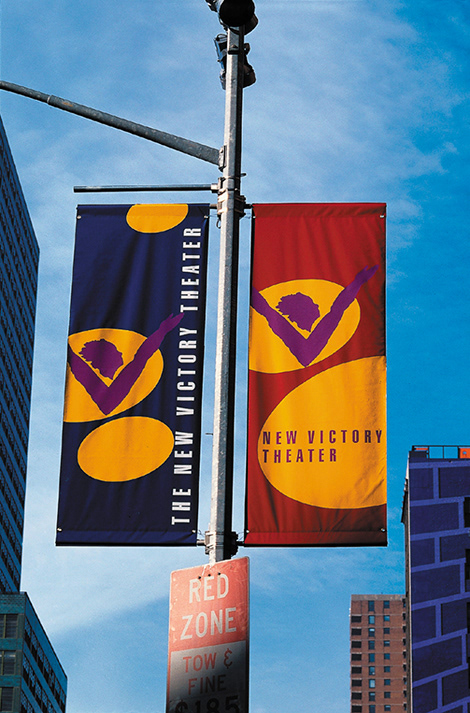 Design of Identity, interior and exterior graphics/signs and facade for the New Victory Theater, the first Broadway theater for kids.