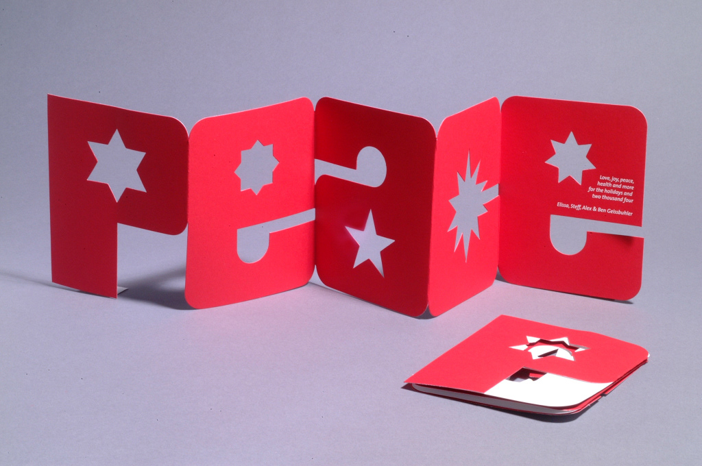 Peace Holiday Card manufactured, die-cut, engraved by mPress