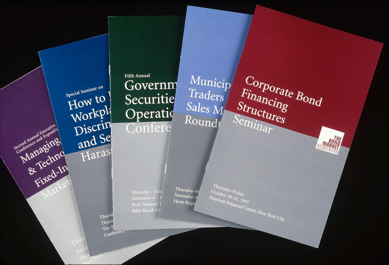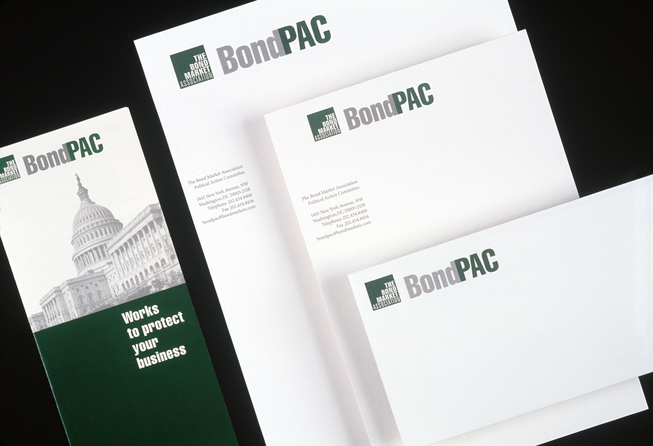 The Bond Market Association represents the largest securities markets in the world: an estimated $48 trillion in debt markets. The organization has always had the scale of a formidable player, but was traditionally hampered by a long name and a low visibility. The name was reshaped into a block, so that the whole forms a logotype. This gesture symbolically conveys a growth spike on a chart, while taking advantage of the increasingly length of each word in the name. The words are then aligned on the right with “The Bond Market” set in bold and placed within a dark green square, further suggesting an upward trend-line. A unified, memorable identity, managed globally through a graphic standards manual, now appears in print, on the website, as signage, and across an extensive publications system.